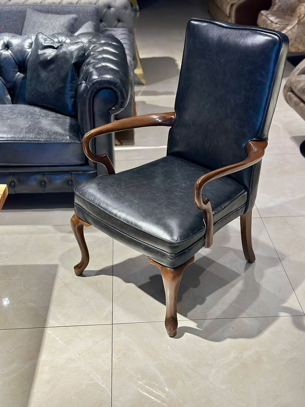 Одноместное кресло из орехового дерева с подлокотниками из ореховых брусков.